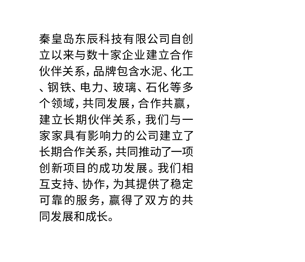 秦皇岛东辰科技有限公司是一家专门从事智能工厂关键技术研发与应用的国家高新技术企业,拥有AAA级质量服务诚信单位资质,并通过了ISO9001质量体系认证、双软企业认证。 公司自2014年成立以来,专业致力于面向工业互联系统的智能控制系统、专家智能优化控制,以及能源管控分析等相关领域关键技术的研究工作。形成了一套集设计、安装、调试、维护为一体的项目实施体系